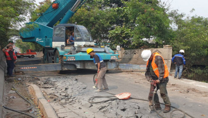 Dinas Bina Marga DKI Jakarta melanjutkan perbaikan Jembatan Marunda di Jalan Akses Marunda, Cilincing, Jakarta Utara. Perbaikan dilakukan secara bertahap hingga September mendatang.
