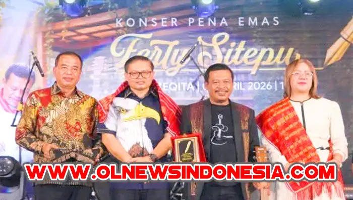 Bupati Karo, Brigjen Pol (Purn) Dr. dr. Antonius Ginting, Sp.OG., M.Kes., didampingi Wakil Bupati Karo, Komando Tarigan, SP., serta Ketua Komite II DPD RI, Dr. Badikenita Br Sitepu, S.E., S.H., M.Si., menghadiri Konser Pena Emas Ferly Sitepu yang digelar di Balai Zeqita, Medan, pada Kamis (02/04/2026).