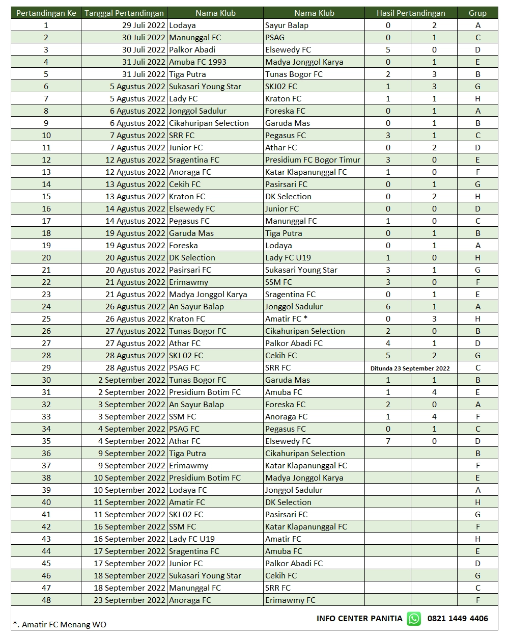 Dengan hasil ini Athar FC merupakan tim kedua yang menghasilkan poin perfecto sempurna yaitu 9 point karena 3 pertandingan wajibnya selalu dimenangkannya dan bahkan menjadi tim tersubur dengan total 13 golnya. Pertandingan terakhir mempertemukan pertandingan hidup mati untuk masuk ke 16 besar yaitu Palkor Abadi VS Junior. Junior wajib menang, sementara Palkor Abadi cukup seri untuk pastikan masuk babak selanjutnya.