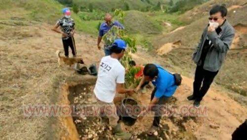 Direktur PT BUK (Bibit Unggul Karobiotek) Jin Ngi menyerahkan lahannya untuk ditanami pohon Durian melalui kerjasama CSR (Corporate Sosial Resposibilty) kepada masyarakat Desa Suka Maju dan Desa Kacinambun serta warga di sekitar Puncak 2000 Siosar Kabupaten Karo melalui Simantek Talun Kuta Desa Sukamaju Kecamatan Tigapanah, Kabupaten Karo pada Minggu kemarin,(27/03.2022).