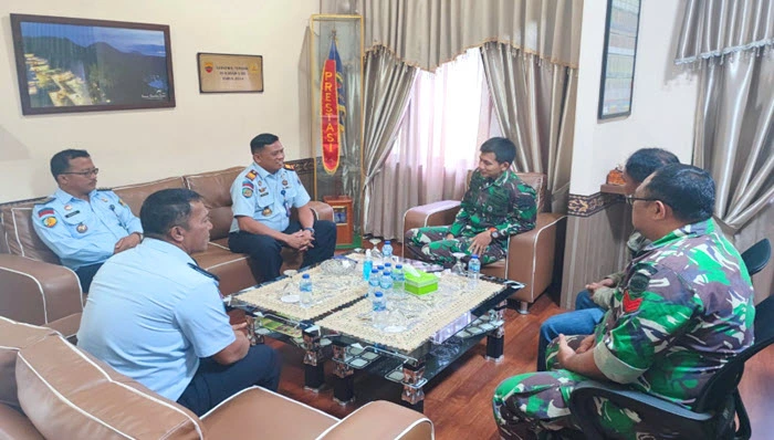 Kepala Rutan Kelas IIB Kabanjahe, Chandra Syahputra Tarigan, S.H di dampingi Kepala Kesatuan Pengamanan Rutan Kamsen Bangun,S.H dan Kepala Sub seksi Pelayanan Tahanan, Sastra Barus menyambangi Kantor Komando Distrik Militer (KODIM) 0205/Tanah Karo, Senin (05/12. 2022) sekira pukul 10.00 WIB.