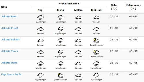 Untuk suhu udara pada hari ini berkisar antara 24 hingga 33 derajat celcius dengan kelembapan udara sekitar 60 hingga 95 persen.