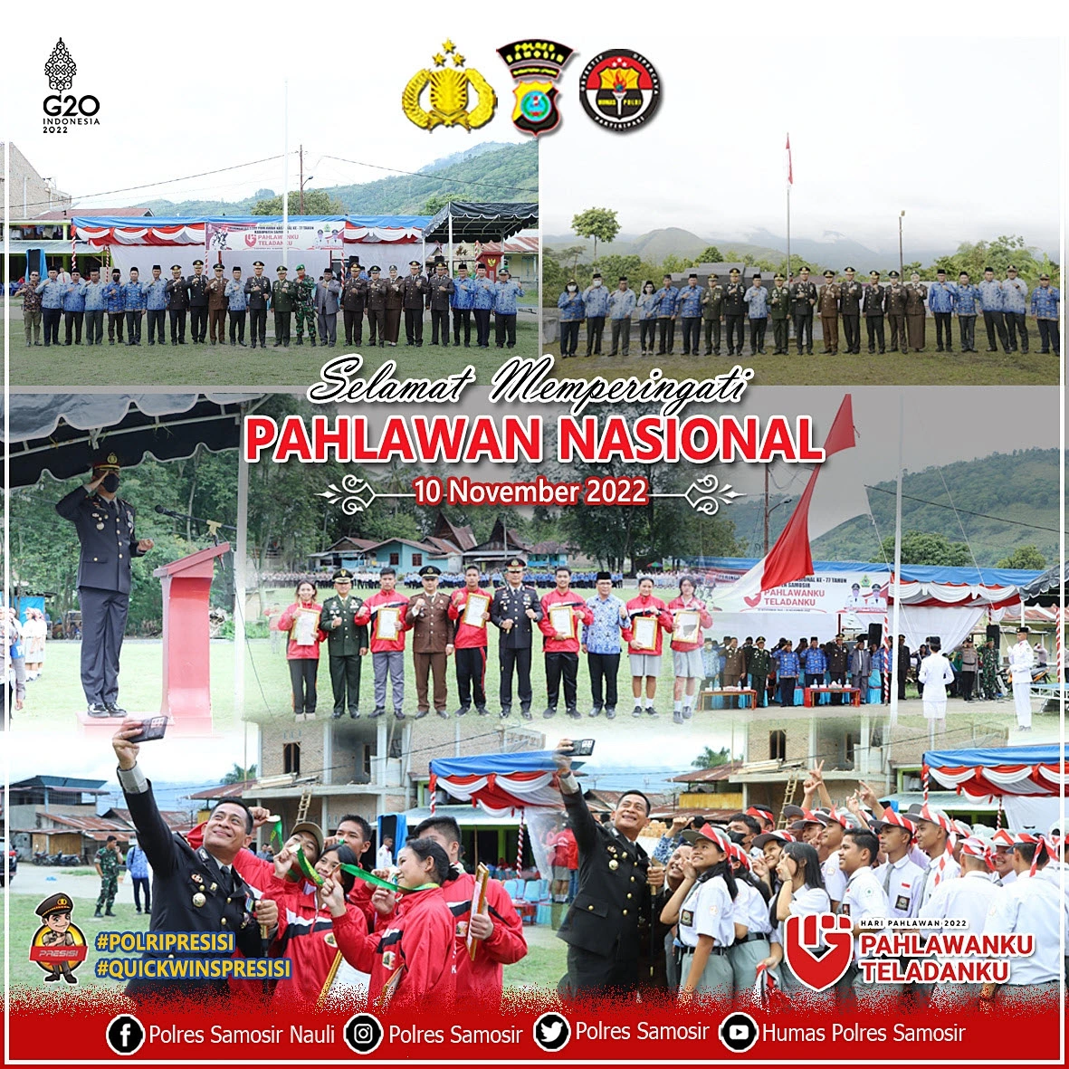 Dalam kegiatan Upacara Hari pahlawan tersebut Kapolres Samosir AKBP Josua Tampubolon SH. MH, mengapresiasi dan memberikan penghargaan kepada atlet yang juara pada PORPROVSU pada bulan Oktober, dimana para atlet dari Muay Thai meraih medali emas 2 dan 1 Perunggu, Pencak silat raih medali perak 1, dan Wushu raih medali perunggu 2.