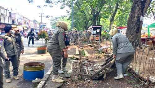 Satpol PP Kab Bogor bersama Satpol PP Kota Bogor melakukan operasi gabungan penertiban 23 Bangunan tanpa izin , 19 bangunan Pedagang, 1 bangunan Pangkalan Ojek, 2 bangunan taman, dan 1 Bangunan eks Poskamdes di Villa Bogor Indah pada Kamis, 11 Agustus 2022.