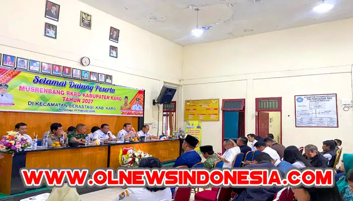 Mewakili Bupati Karo, Staf Ahli Bidang Politik dan Pemerintahan, Frans Leonardo Surbakti, S.STP membuka secara resmi kegiatan Musrenbang – RKPD (Musyawarah Perencanaan Pembangunan – Rencana Kerja Pembangunan Daerah) Pemerintah Kecamatan Berastagi Kabupaten Karo Tahun 2027 di Aula kantor Camat Berastagi, Rabu (11/02/2026) dimulai sekira pukul 10.00 WIB yang di hadiri oleh Bappeda Litbang Pemerintah Kabupaten (Pemkab) Karo, Dinas PUTR Pemkab Karo, Dinas Perkim Pemkab Karo, jajaran Muspika Berastagi (Camat Berastagi, David C Sembiring, Danramil 03/BT, Tamrin Vincent Bangun, Waka Polsek Berastagi M. Marbun), Dinas Pertanian, KUA Berastagi, dan Tokoh Masyarakat serta para stakeholder.