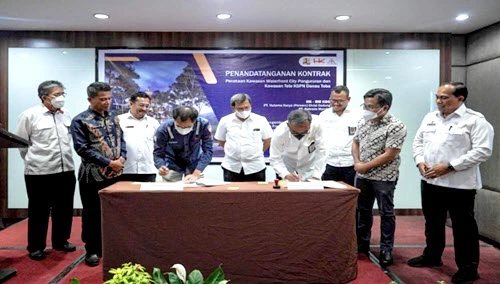 Balai Prasarana Permukiman Wilayah Sumatera Utara, Dirjen Cipta Karya, Kementerian PUPR melakukan penandatangan Kontrak Kerjasama dengan Penyedia Jasa PT. Hutama Karya (Persero) Divisi Gedung dan PT. Betesda Mandiri (HK – BM KSO) di Grand City Hall Medan, Senin (12/9).