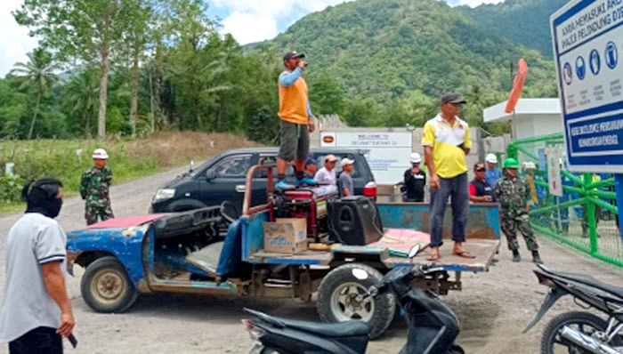 Dalam aksi pernyataan sikap tersebut, terlihat sejumlah masyarakat menyampaikan orasi dengan berdiri diatas kendaraan pick up menggunakan speaker aktif dihadapan petugas keamanan di gerbang masuk dan dapat didengarkan oleh seluruh pekerja yang ada di lokasi tersebut.