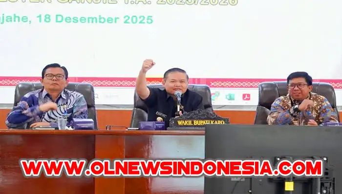 Pemerintah Kabupaten (Pemkab) Karo melaksanakan acara penarikan Mahasiswa peserta Program Kuliah Kerja Nyata Tematik Merdeka Belajar Kampus Merdeka (KKN-T MBKM) Universitas Sumatera Utara (USU) Semester Ganjil Tahun Akademik 2025/2026 yang berlangsung di Aula Kantor Bupati Karo, Kamis (18/12/2025).