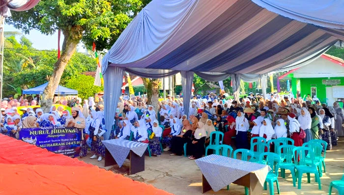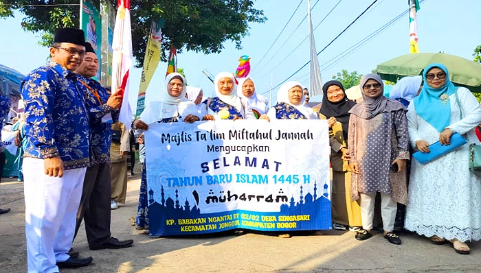 Kepala Desa Singasari Euis Sujana S.Ds bersama warga Desa Singasari memperingati 1 Muharram 1445 Hijriah dengan menggelar berbagai kegiatan dari pengajian, qasidahan, pawai taaruf, lomba tumpeng dan lain sebagainya yang di gelar di halaman Kantor Desa Singasari, Kecamatan Jonggol, Kabupaten Bogor pada Minggu, 23 Juli 2023.