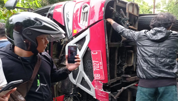 Sekitar jam 07.38 WITA rombongan jemaat GMIM Kanaan Winenet Wilayah Bitung XII yang sedang menuju ke arah Kabupaten Mitra alami kecelakaan khususnya kendaraan bus plat merah DB 7207 AC.